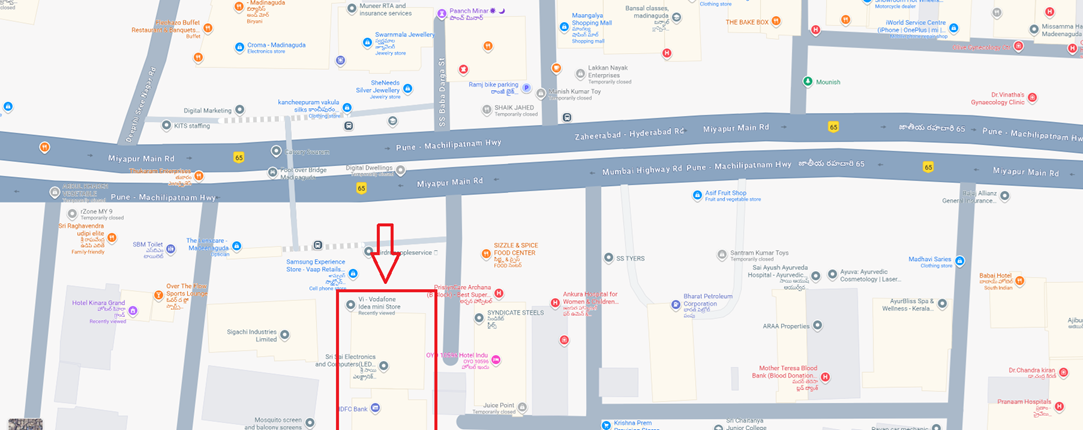 Door No 306, Yashoda Pearl Complex, near Hdfc Bank, Ramakrishna Nagar, Hafeezpet, Madeenaguda, Hyderabad, Telangana 500049